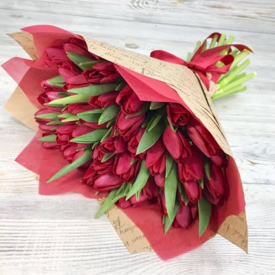 Высота стебля тюльпанов 40-50 см, кол-во в букете 51 шт.