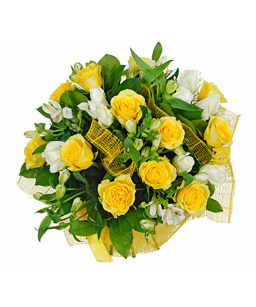 №5 Букет из 21 желтой и белой розы