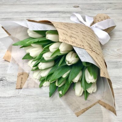Высота стебля тюльпанов 40-50 см, кол-во в букете 25 шт.