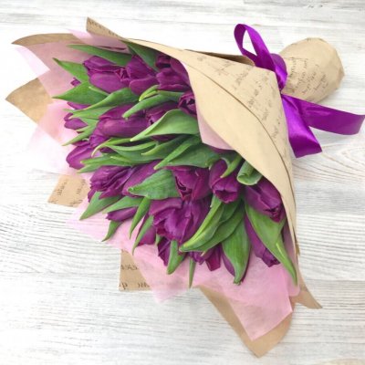 Высота стебля тюльпанов 40-50 см, кол-во в букете 25 шт.