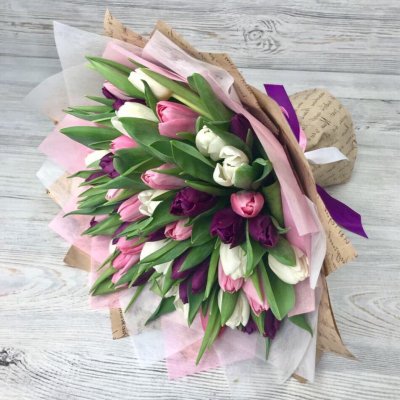 Высота стебля тюльпанов 40-50 см, кол-во в букете 51 шт.