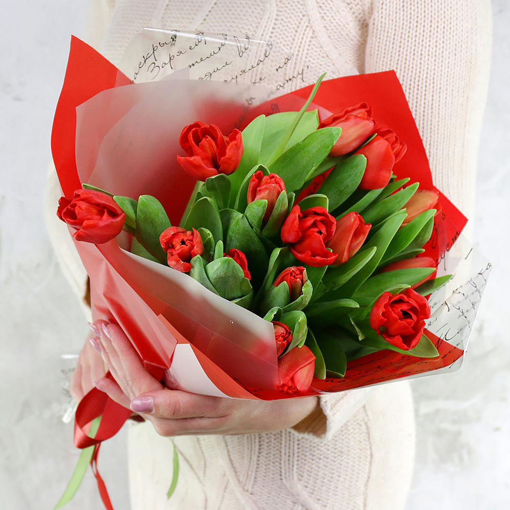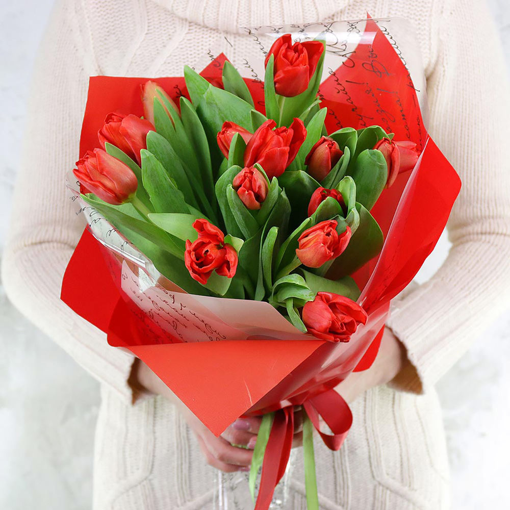 Букет из красных тюльпанов отличный выбор и в подарок любимому человеку, или просто знакомой. Цвет тюльпанов может варьироваться. Букет собран с применением новейших упаковочных материалов, которые придают особый колорит вашему подарку. Такой букет отлично подойдет как подарок боссу, бизнес партнеру, коллеге. Цветы долго будут оставаться свежими, так как будут защищены от воздействий внешней природы