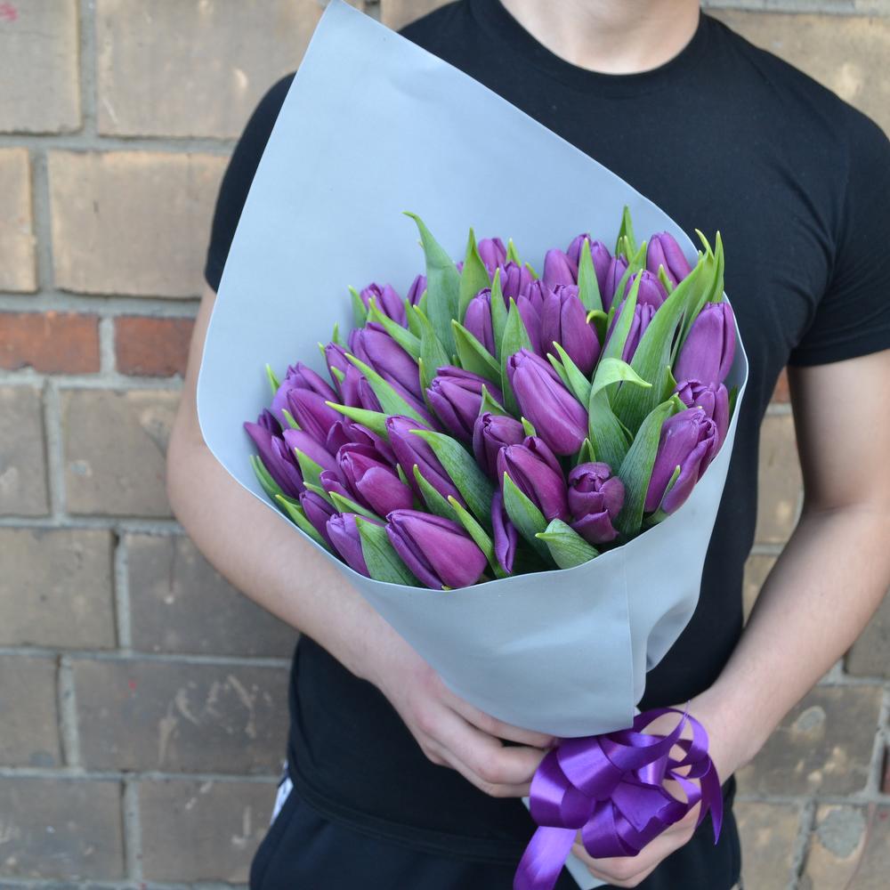 Букет из фиолетовых тюльпан отлично подойдет в качестве подарка для юной девушки. Необычное строение соцветий, их приятный оттенок и благоухающий аромат, как ничто лучше способны подчеркнуть красоту, молодость и нежный характер получательницы. Вы можете подарить тюльпаны дочке на День Рождения, выпускной, 8 Марта или по случаю выступления в школе. Букет из таких приятных и сочных бутонов будет вызывать искреннюю улыбку на лице девушки и приковывать взгляд всех присутствующих гостей. Кроме этого, Вы можете выбрать любое количество цветов и вручить, к примеру, большую охапку фиолетовых тюльпан на годовщину супруге или юбилей дорогой маме. Поверьте, они запомнят Ваш подарок на долгие годы!