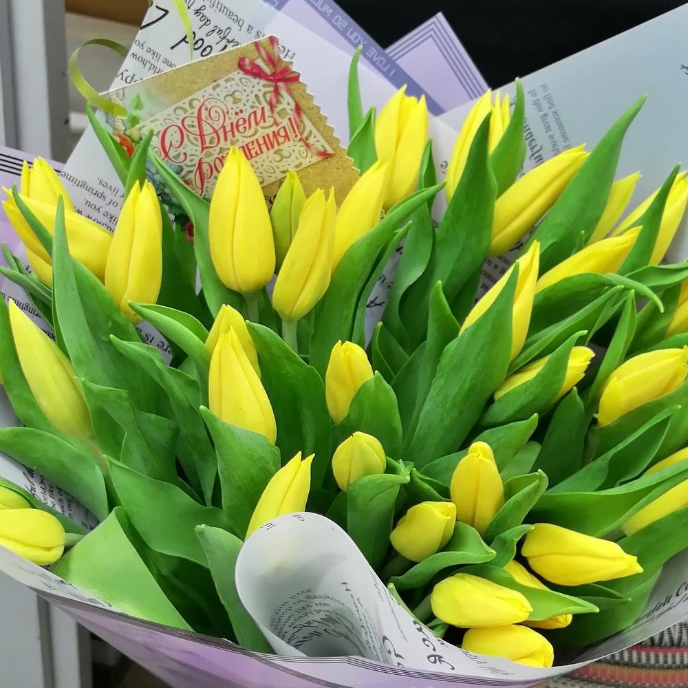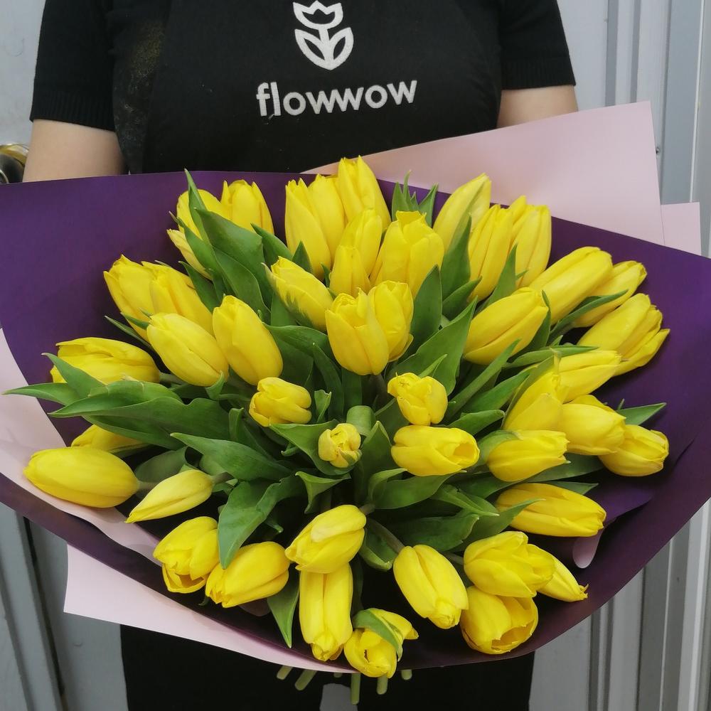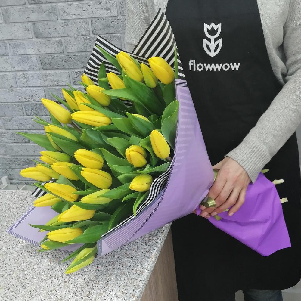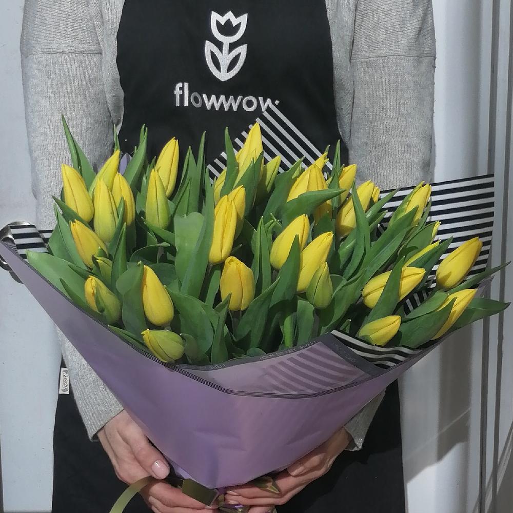 Превосходный букет из желтых тюльпанов напомнит о приближении весны и тёплых, солнечных денёчков)) Тюльпаны считаются символом весны и романтики, а так же пробуждают желание совершать красивые поступки и более открыто проявлять свои чувства и эмоции. Сделать это можно, подарив близкому человеку букет из тюльпанов, символизирующий Вашу искренность!!