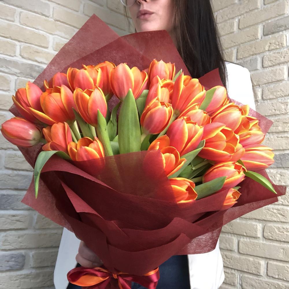 Сортовые Тюльпаны ярких оттенков поднимут настроение в любую погоду:) аромат весны и ощущение тёплых солнечных лучей обеспечены! Наши флористы бережно очищают жадный цветок и профессионально составляют букет. Благодаря этому, наши цветы будут радовать получателя своей свежестью очень долго! Такой букет подойдёт в качестве подарка для бабушки, для мамы, для любимой девушки и даже для коллеги на день рождения, как комплимент или на любое другое событие! Универсальный букет, не правда ли?)