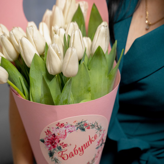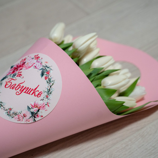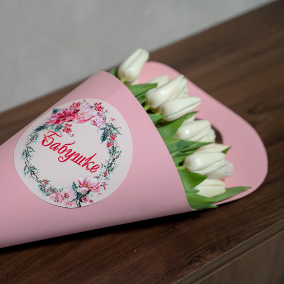 Цвет тюльпанов можете указать любой (белый, желтый, розовый, фиолетовый, бело-розовый)